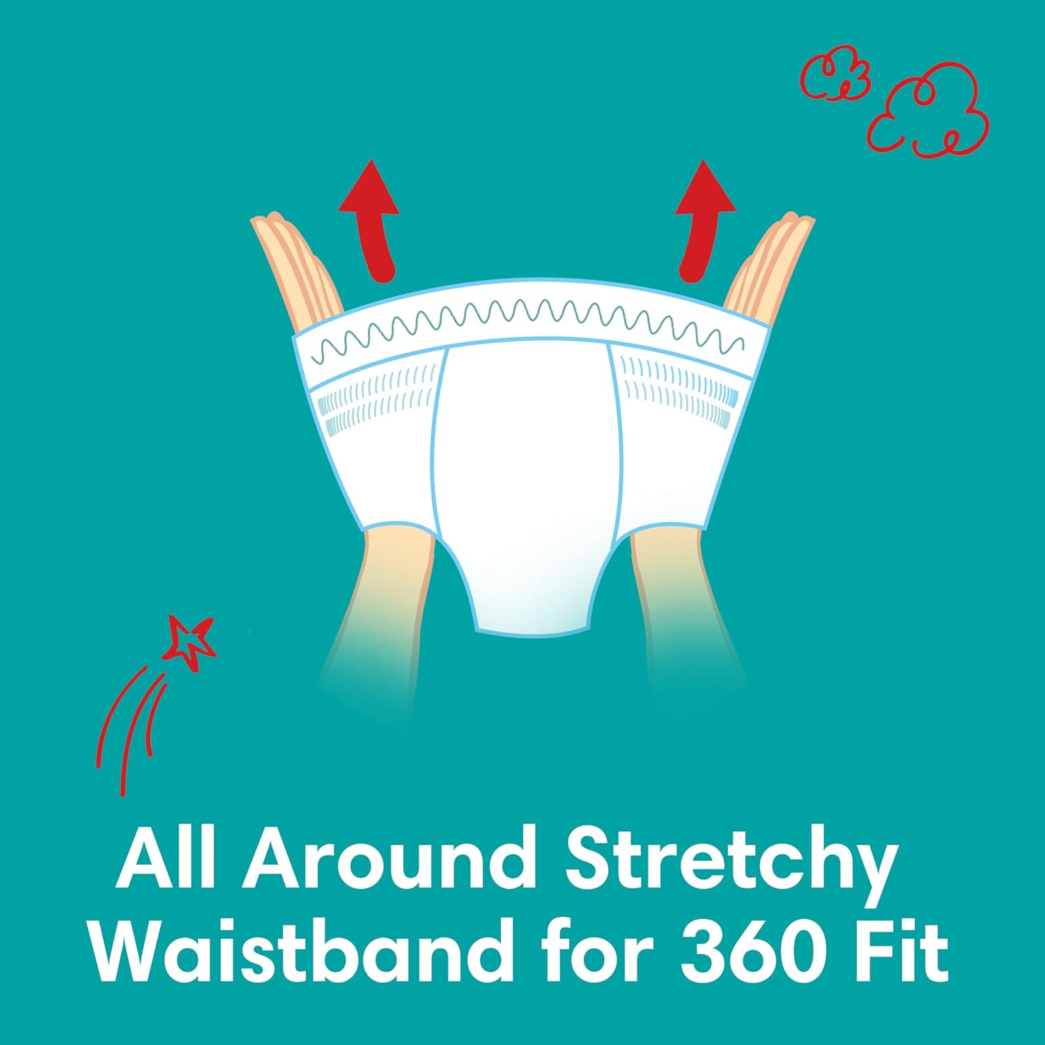 - ملاءمة أفضل للحفاضات: صُممت حفاضات بامبرز بانتس مقاس 7 بتقنية جديدة بزاوية 360 درجة، مما يُمكّنها من التمدد من جميع الجوانب والتكيف مع حركة الطفل. إنها ضرورية لجميع الأطفال الصغار والرضع النشيطين الذين يستمتعون باختبار متانة الحفاضات من خلال التدحرج والانزلاق والتسلق، وقبل ذلك - الجري.