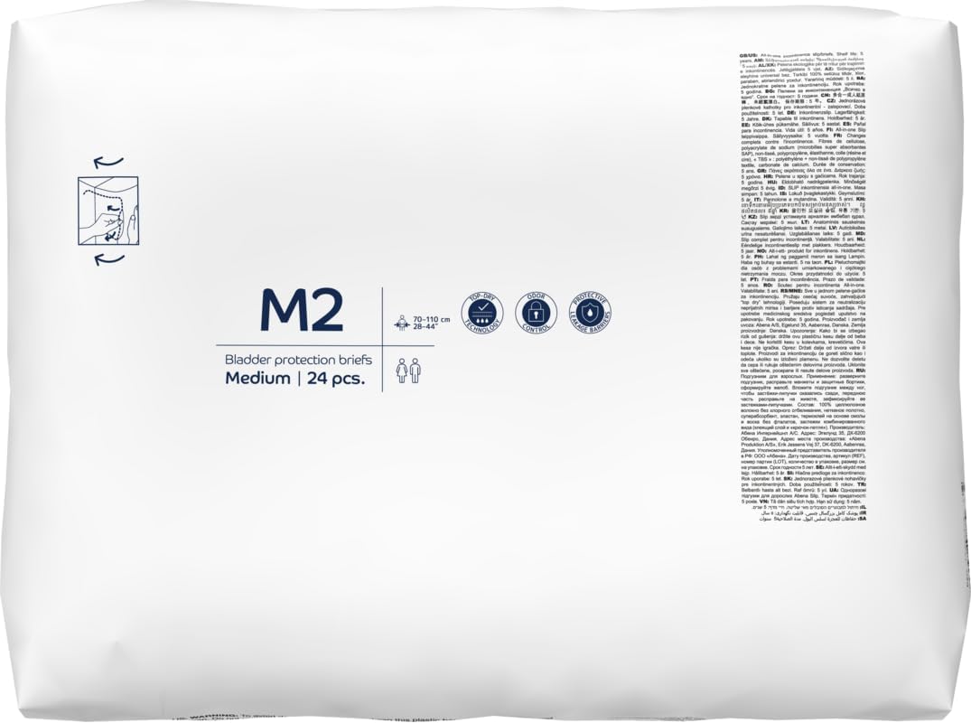 ABENA Slip Basic M2 Pack of 24 Incontinence Pads Women Men with an Absorbency of 2300ML Fast Absorbing Adult Nappies with a Odour Control System. ABENA Incontinence Pads Hip Size 70 110cm.