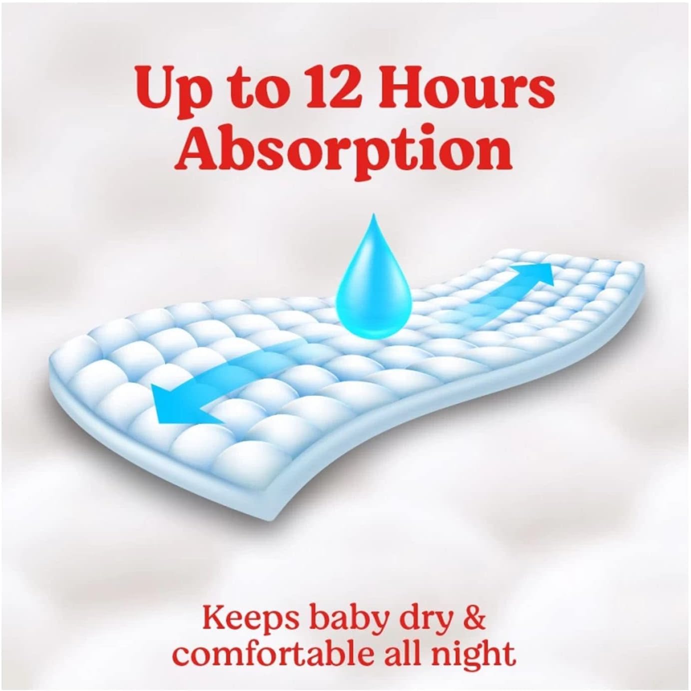 - Three absorbing channels distribute wetness evenly and lock it better, using the full diaper from front to back for up to 100% leakage protection and 13 hours of dryness.
